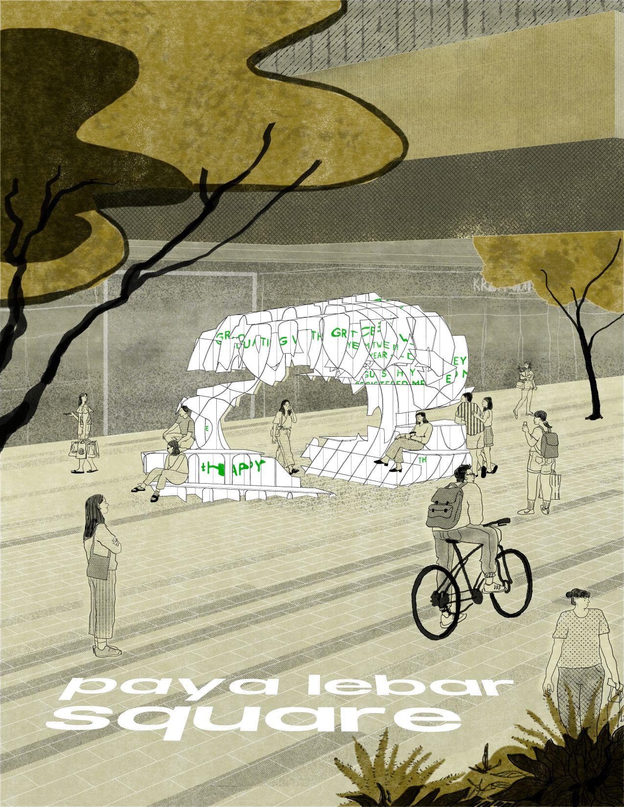 a collection of structures focusing on creating novel opportunities for public delight and engagement, creating a didactic journey expressing the perspectivity of happiness in the Paya Lebar District