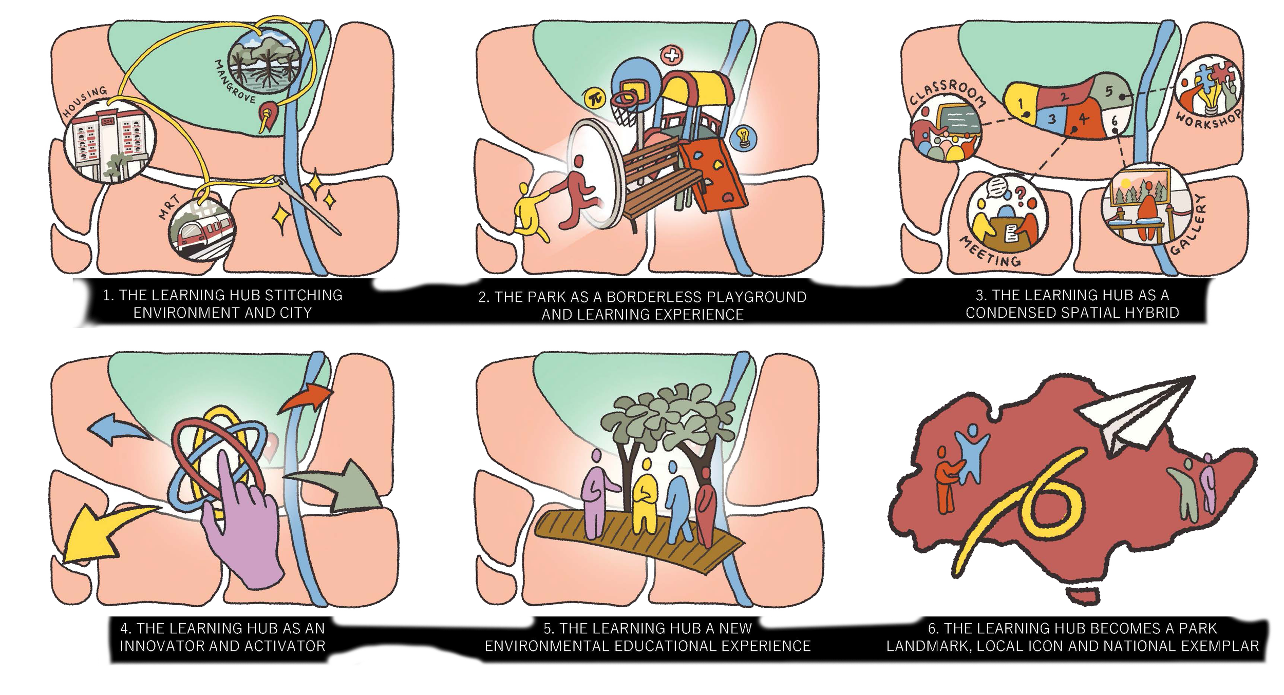 Changing in porosity, the façade creates dynamic microcosms of space: from a hearth-like space for focused workshops and environmental education, to the more open-ended public front that allows for flexible configuration and maximising spectatorship and visual dialogues. The Learning Hub is therefore available to cater to a wide range of activities, for intimate and humanized spaces for small group interaction and sharing, to communal spaces for communal gathering and events. This line of connected spaces encourages social exchange and cohesion through the shared appreciation for the environment, creating an inclusive and memorable shared community Learning Hub for all.