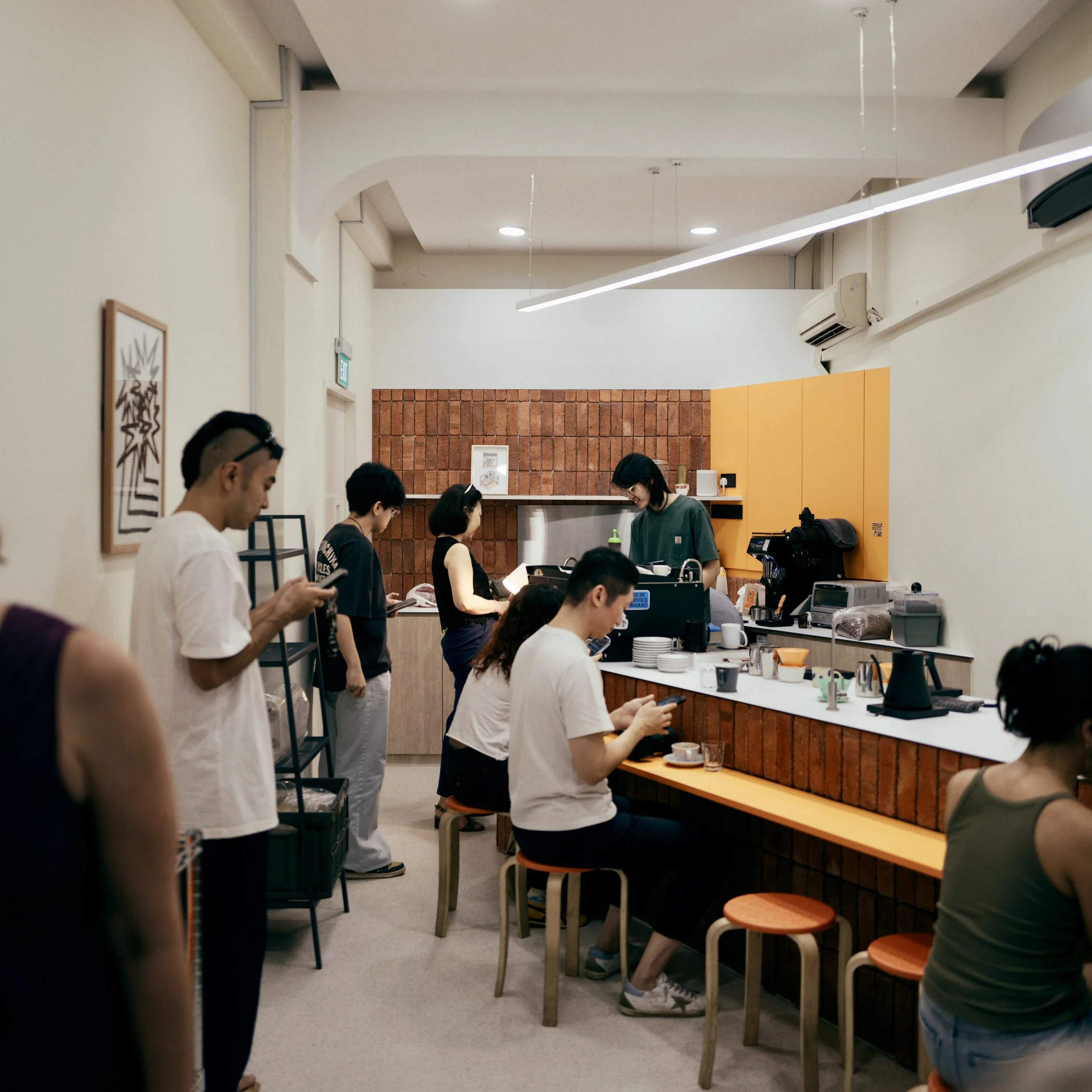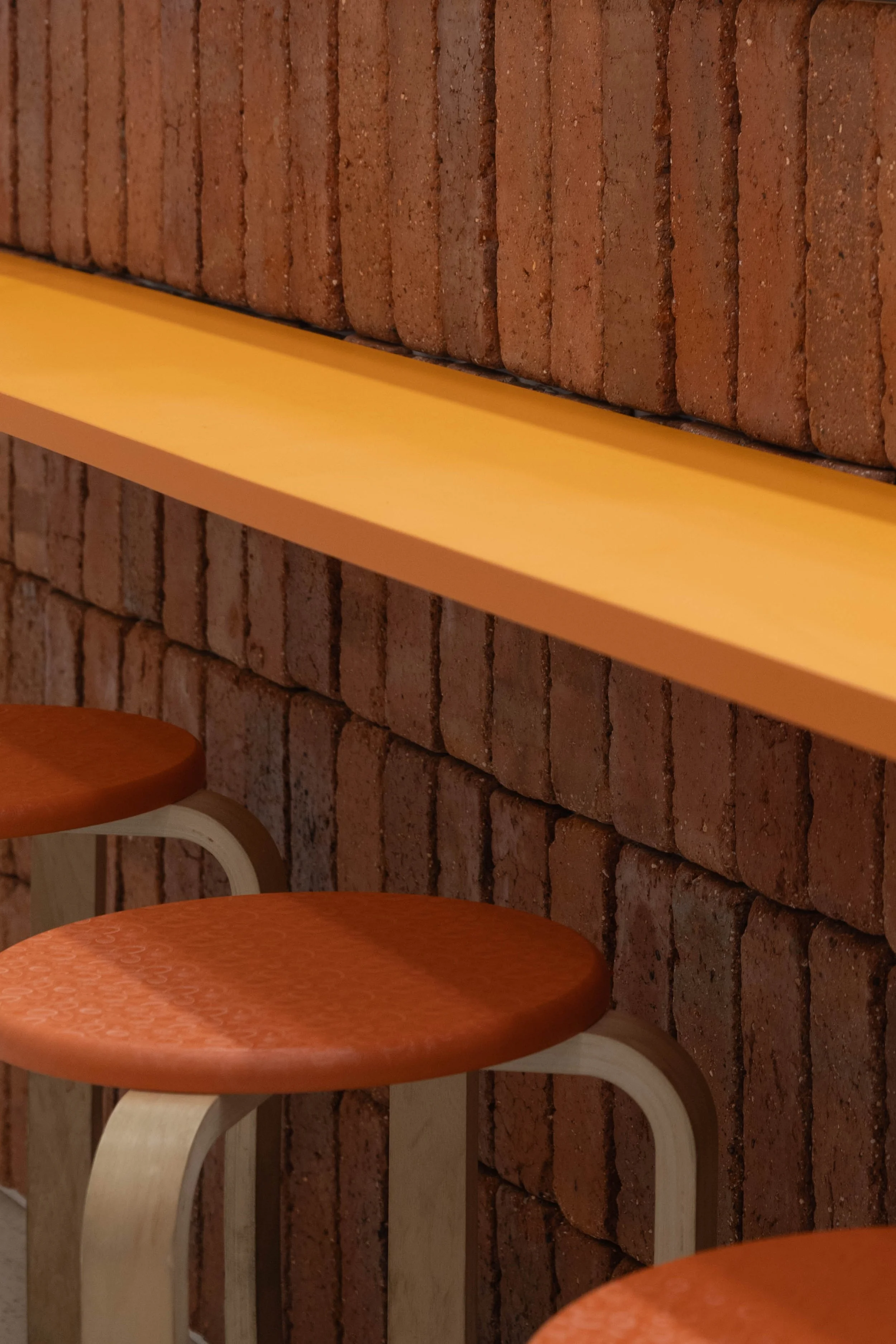 Central to the narrative of Rookies is the deliberate incorporation of brick as a symbolic element. Inspired by Lefebvre's concept of space production through symbolic appropriation, the brick here parallels the brick pavers that wrap around the estate’s walkways, serving as a tangible manifestation of Rookies' active engagement with its urban context. The calculated integration of brick elements from the surrounding urban environment not only imbues the café with a sense of rootedness but also visually underscores its active engagement with the broader urban fabric.